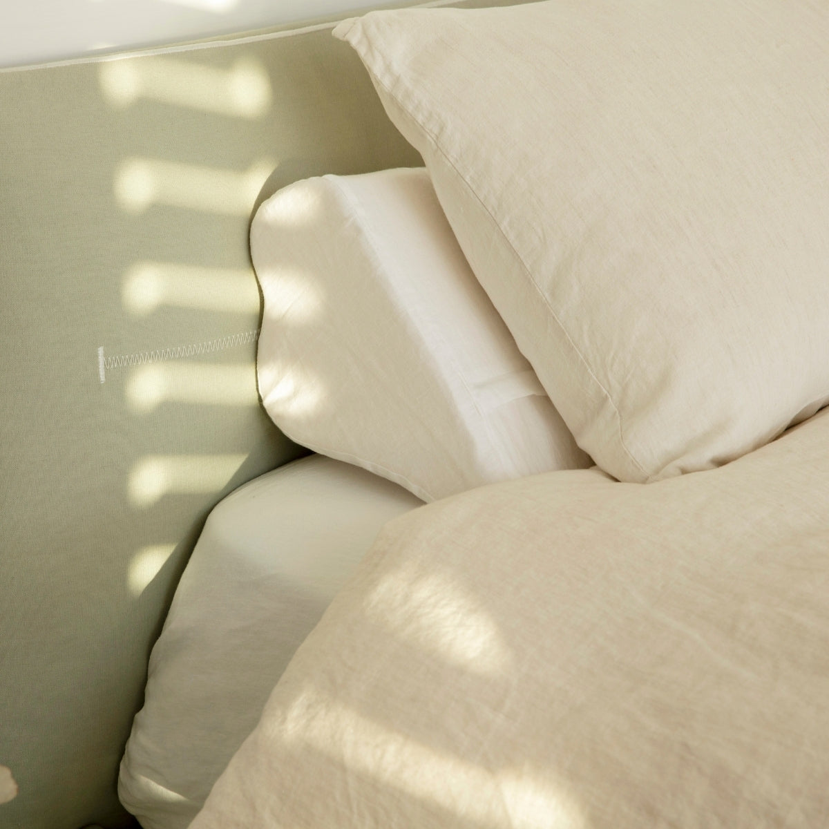 The Back Sleep Pillow cradles you with familiar comfort; its raised side supports are gentle reminders, not guards.