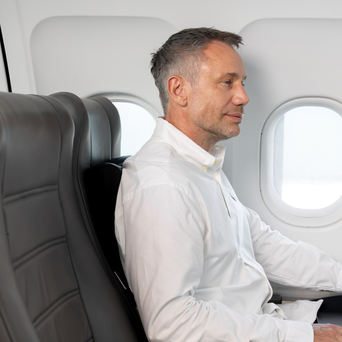 Slip the pillow into the Travel Bag to transform it into a compact lower back support - perfect for long-haul flights.